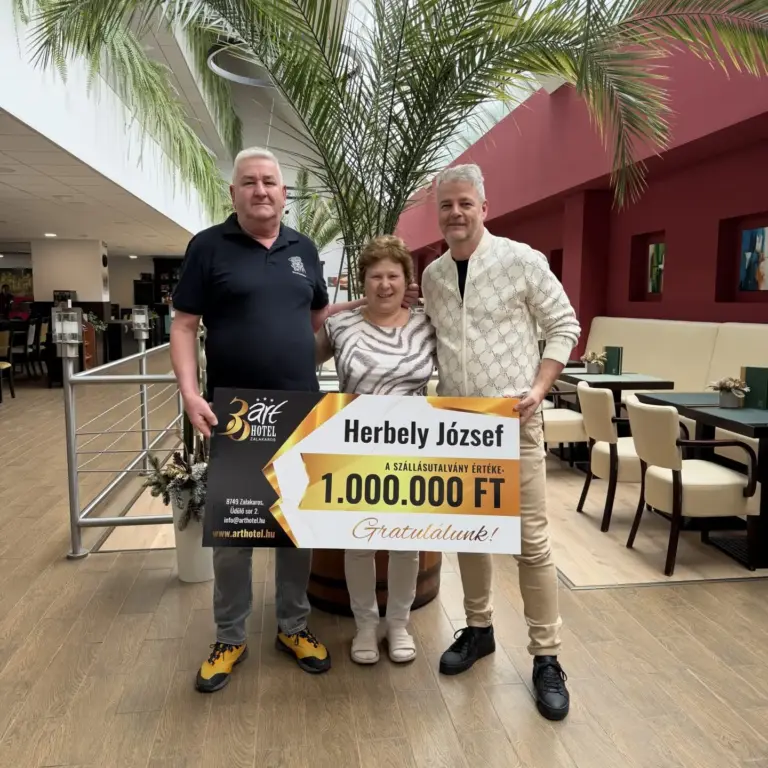 Örömmel tájékoztatjuk Vendégeinket, hogy az Art Hotel Zalakaros 30. születésnapja alkalmából meghirdetett ARTMILLIO nyereményjátékunk sorsolása 2025. december 15.-én, gépi sorsolás útján, név és foglalási azonosító alapján megtörtént.