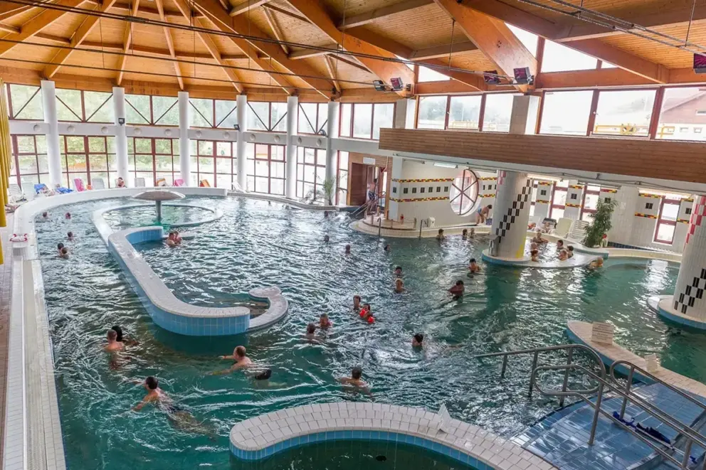 A zalakarosi víz megújító hatásának élvezete a gyógyvizes medencékben, orvosi felügyelettel működő gyógyászat és kezelések széles választéka.